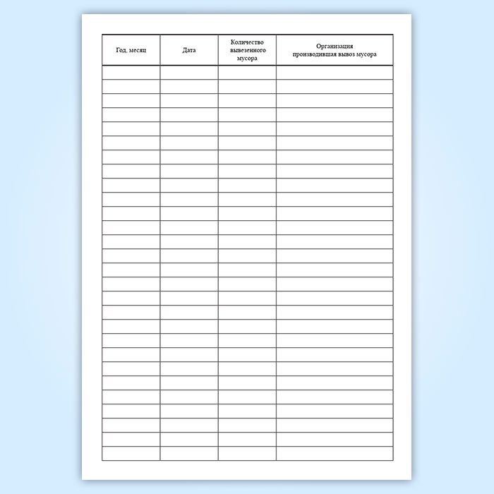 Журнал служит для контроля сроков, объема вывоза мусора с различных объектов.