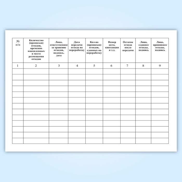 Журнал учета твердых бытовых отходов учитывает все отходы, что были образованы, обезврежены, утилизированы, размещены или переданы другим лицам или получены от других лиц.