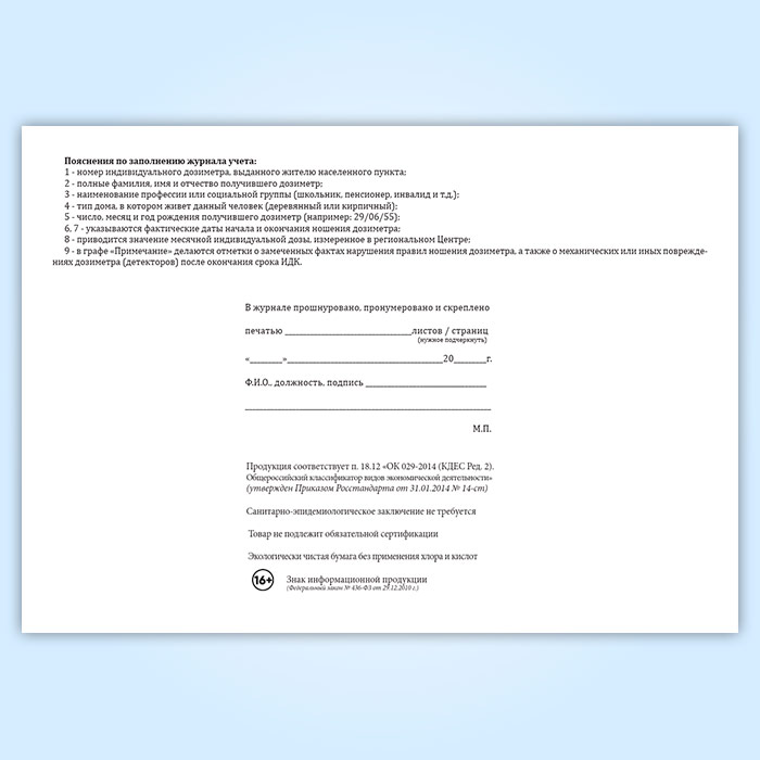 Журнал учета индивидуального дозиметрического контроля внешнего гамма-излучения