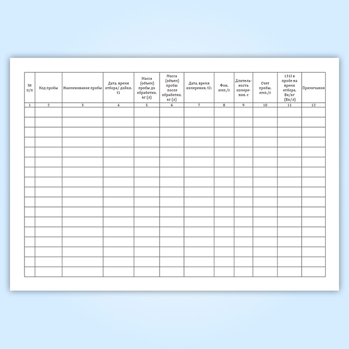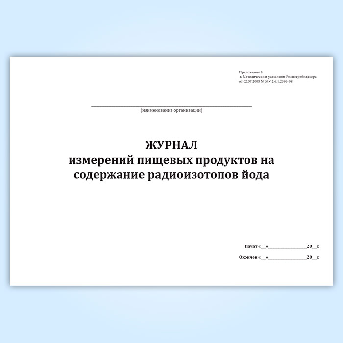 Форма журнала соответствует Приложению 5 к МУ 2.6.1.2396-08 Мониторинг радиоактивного йода в случае масштабной радиационной аварии.