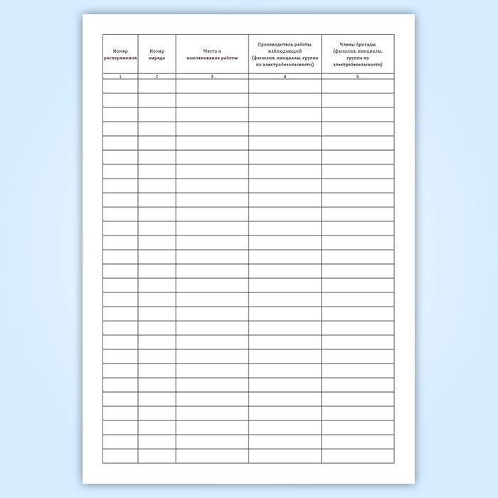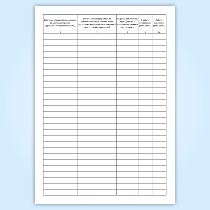 Журнал учета работ по нарядам-допускам и распоряжениям для работы в электроустановках