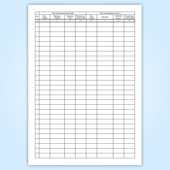 Графы Журнала учета аварийных отключений выключателей 220, 110, 10 кВ от К.З.: