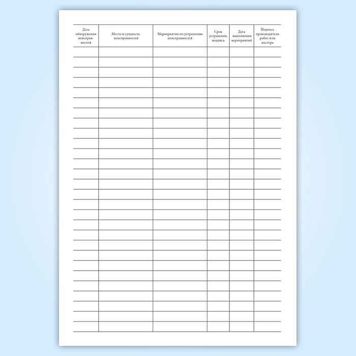 Неисправности, выявленные при осмотрах, профилактических проверок и измерений, вносятся в журнал неисправностей ВЛ. В журнале следует указывать место и сущность неисправностей и мероприятия по устранению.