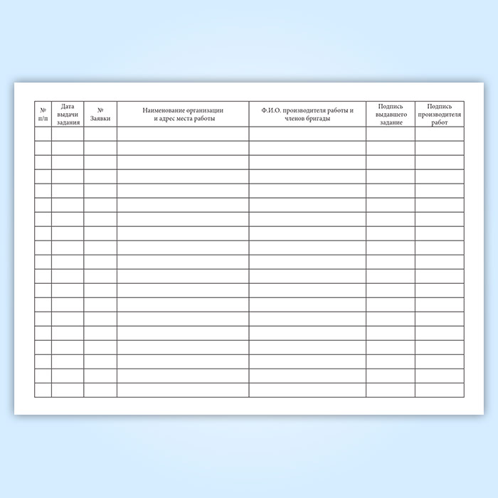 Журнал выдачи заданий на производство работ с электросчетчиками электроэнергии