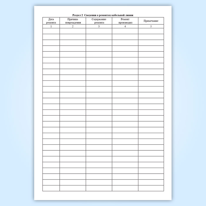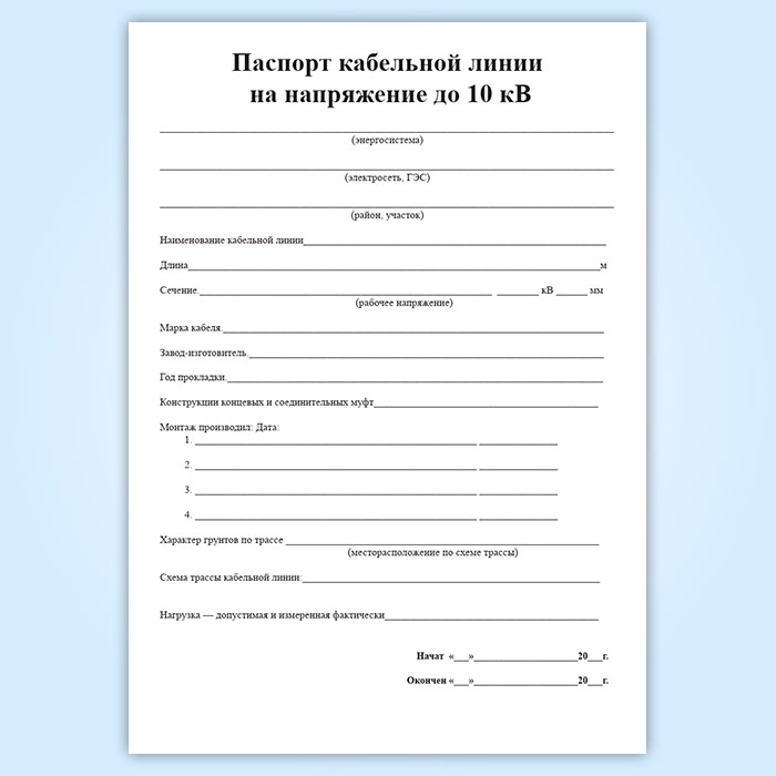 Паспорт кабельной линии на напряжение до 10 кВ