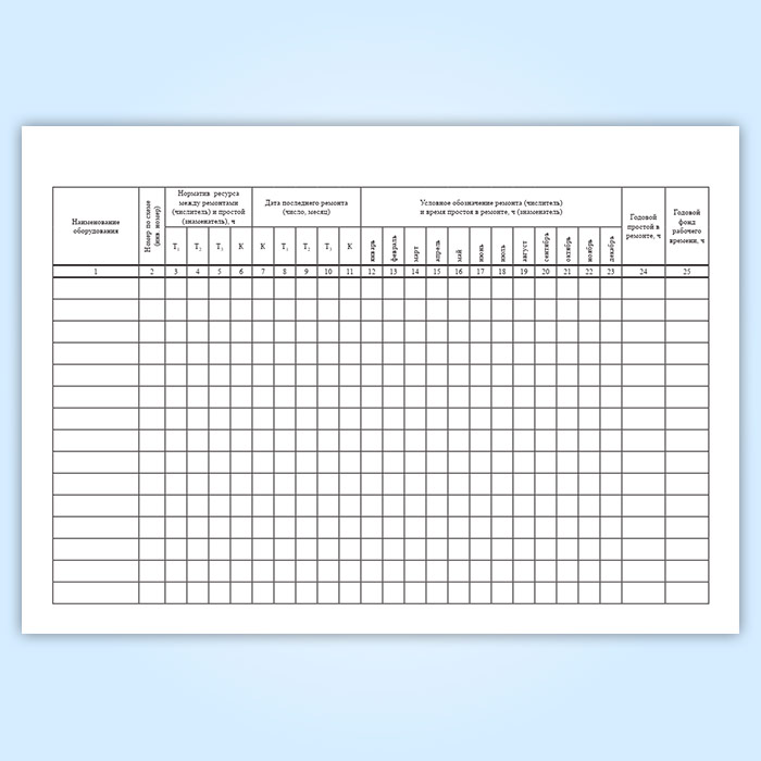 График ППР электрооборудования организации на год имеет графы (столбцы):