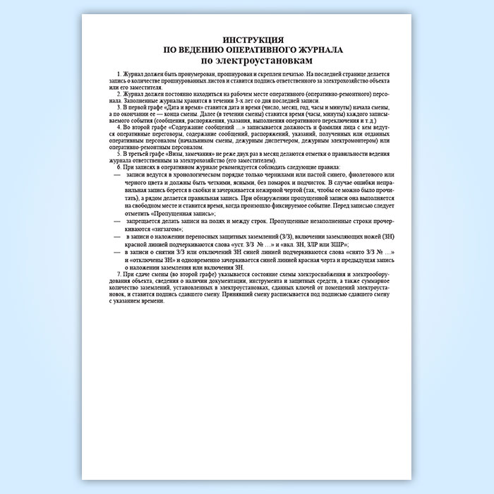 1. Журнал должен быть пронумерован, прошнурован и скреплен печатью. На последней странице делается запись о количестве прошнурованных листов и ставится подпись ответственного за электрохозяйство объекта или его заместителя.