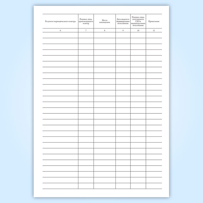 10. Подпись лица, получившего СИЗ в индивидуальное пользование
