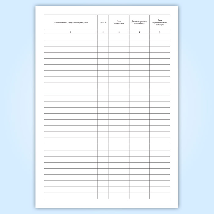 Средства защиты, выданные в индивидуальное пользование, также должны быть зарегистрированы в журнале. Наличие и состояние средств защиты проверяется осмотром, который проводится не реже 1 раза в 6 месяцев работником, ответственным за их состояние, с записью результатов осмотра в журнал.