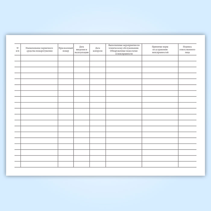См. также Журнал контроля состояния первичных средств пожаротушения, графы которого отличаются.
