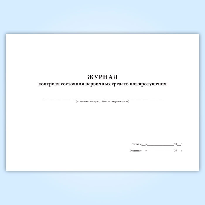 Форма журнала контроля состояния первичных средств пожаротушения соответствует Приложению 2 к Порядку содержания и применения первичных средств пожаротушения на объектах ЭСК ОАО «Россети» Правил пожарной безопасности в электросетевом комплексе ОАО " РОССЕТИ" . Общие технические требования. ВППБ 27-14 СТО 34.01-27.1-001-2014.