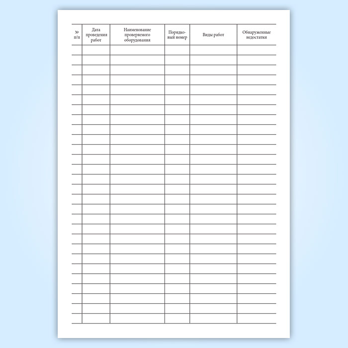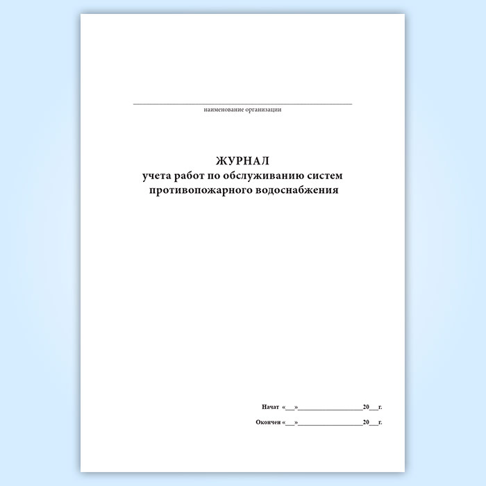 Форма журнала учета работ по обслуживанию систем противопожарного водоснабжения соответствует Приложению к Требованиям к устройству и техническому обслуживания сетей противопожарного водоснабжения на объектах ЭСК ОАО «Россети» Правил пожарной безопасности в электросетевом комплексе ОАО " РОССЕТИ" . Общие технические требования. ВППБ 27-14 СТО 34.01-27.1-001-2014.