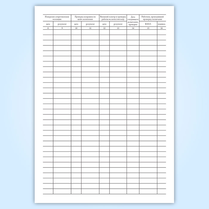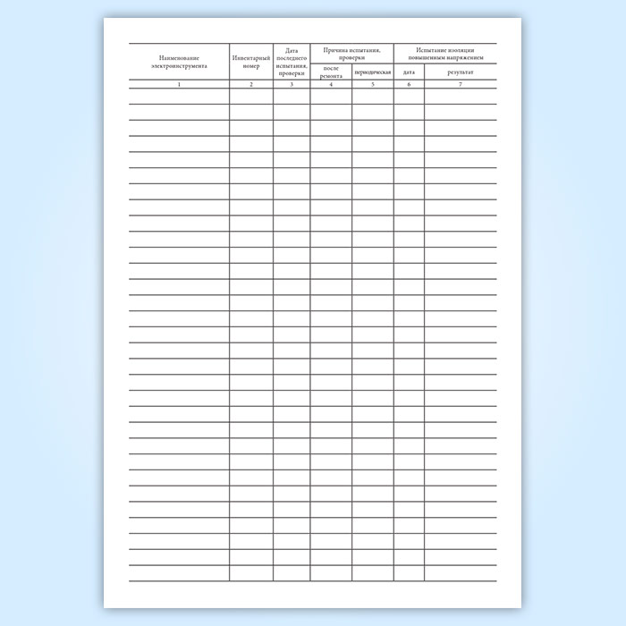 Журнал учета, проверки и испытания электроинструмента, трансформаторов, преобразователей частоты, и переносных светильников