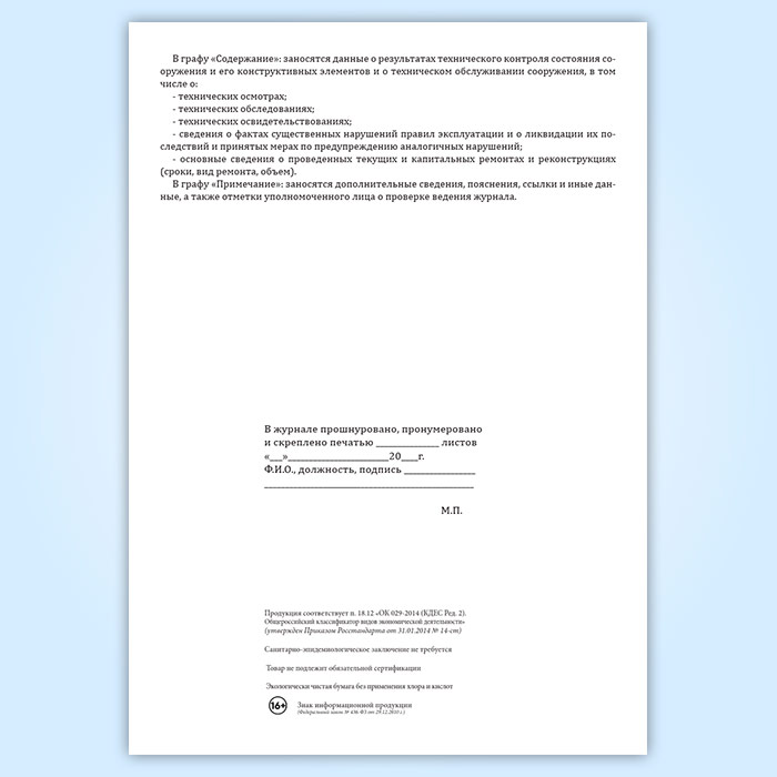Вы получаете печатную продукцию прошнурованной и c местом для вашей печати в соответствии с действующими нормативными документами: