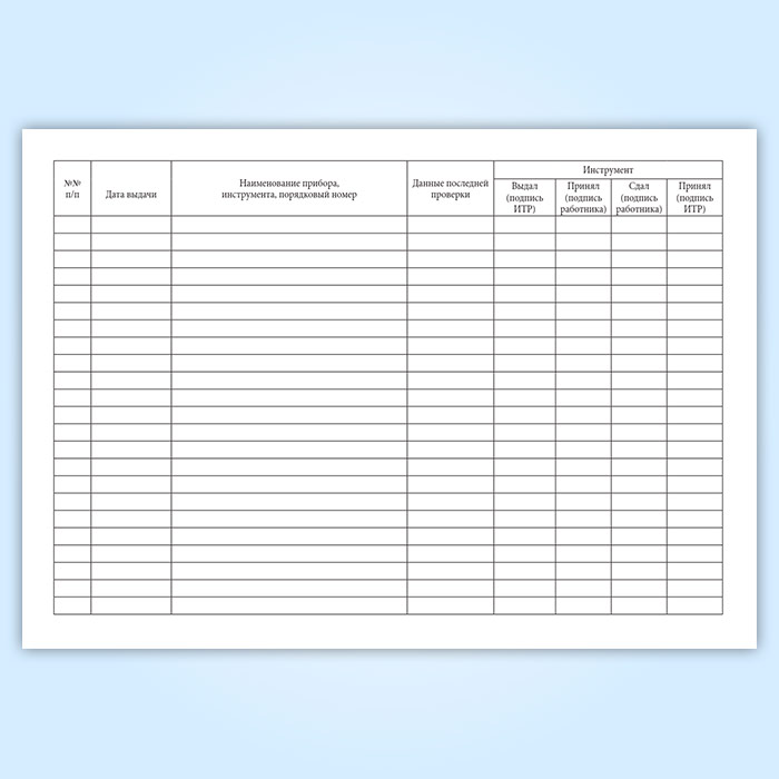 Журнал учета и выдачи электроинструмента и вспомогательного оборудования к нему должен вести назначенный распоряжением по подразделению предприятия работник, отвечающий за сохранность и исправность электроинструмента.