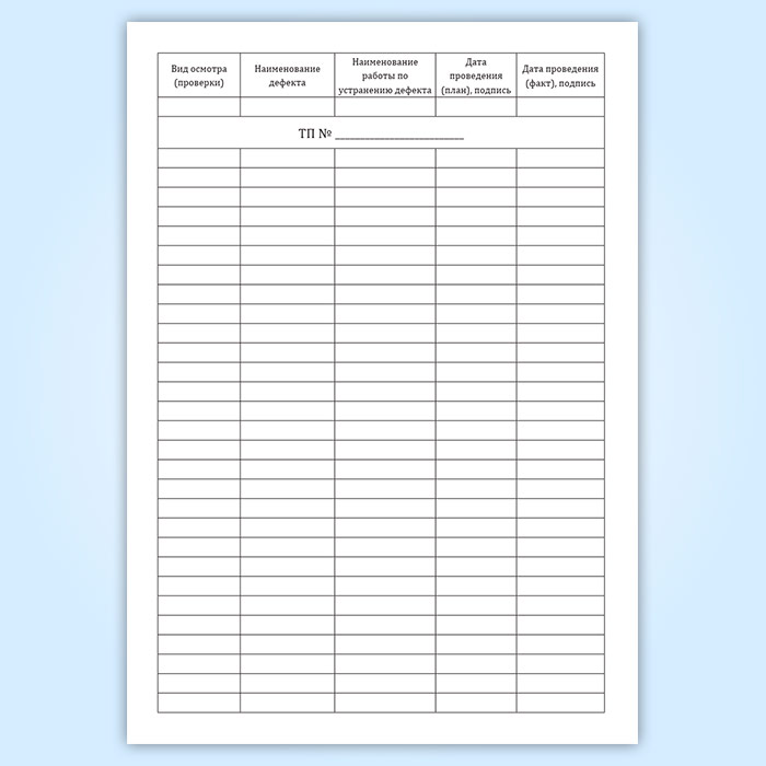 Результаты осмотров, проверок ТП вносятся в журнал дефектов из листков осмотра.
