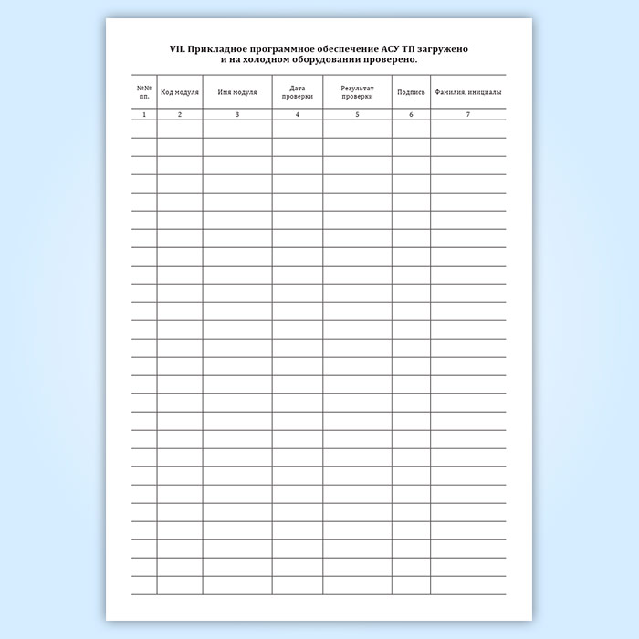 VII. Прикладное программное обеспечение АСУ ТП загружено и на холодном оборудовании проверено. Графы:
