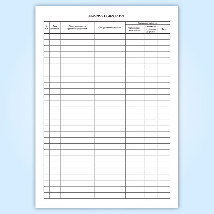 Ведомость дефектов. Графы: