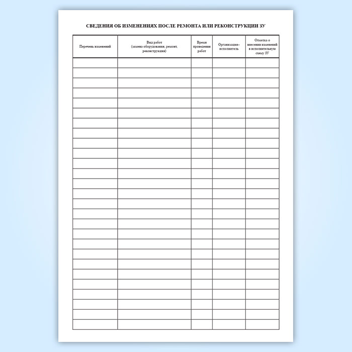 Сведения об изменениях после ремонта или реконструкции ЗУ. Графы: