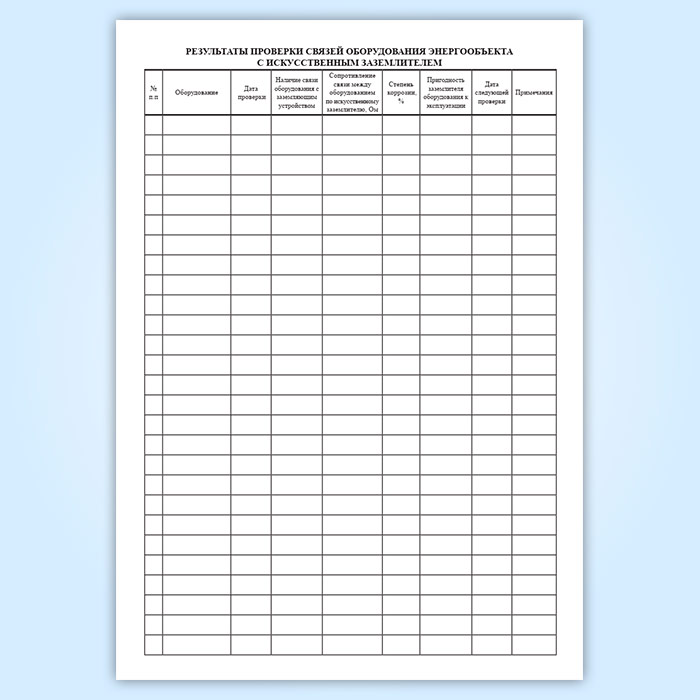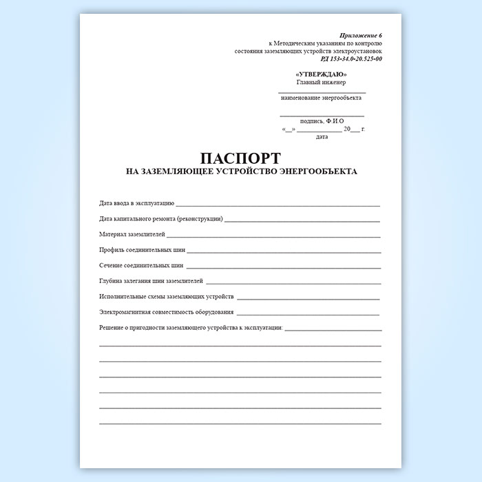 Форма паспорта соответствует Приложению 6 к "Методическим указаниям по контролю состояния заземляющих устройств электроустановок. РД 153-34.0-20.525-00"