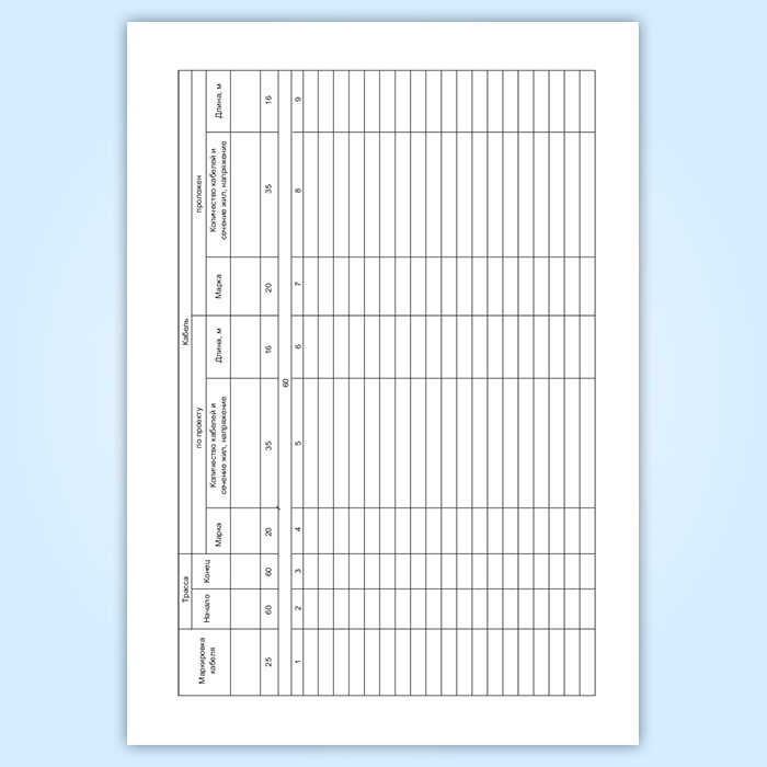 Графы кабельного журнала для питающей сети: