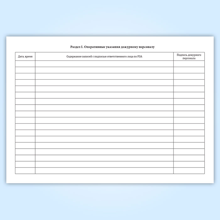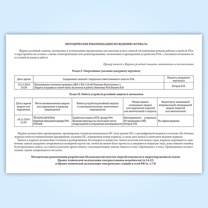 п. 1.8.9. На рабочих местах оперативного персонала (на подстанциях, в распределительных устройствах или в помещениях, отведенных для обслуживающего электроустановки персонала) должна вестись следующая документация: