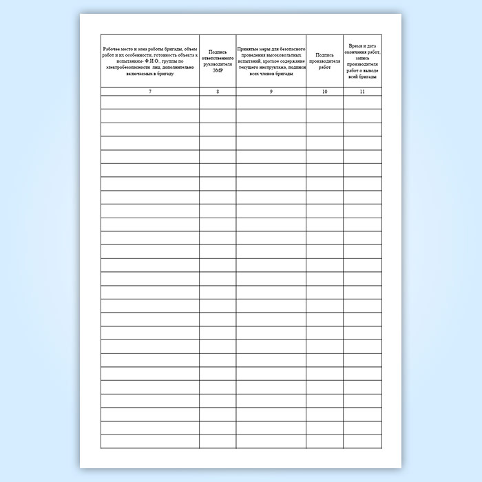 9. Принятые меры для безопасного проведения высоковольтных испытаний, краткое содержание текущего инструктажа, подписи всех членов бригады