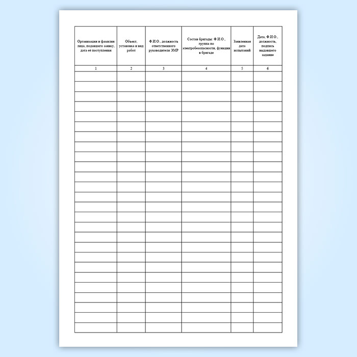 Форма журнала соответствует Приложению 18 к "Правилам техники безопасности при электромонтажных и наладочных работах".