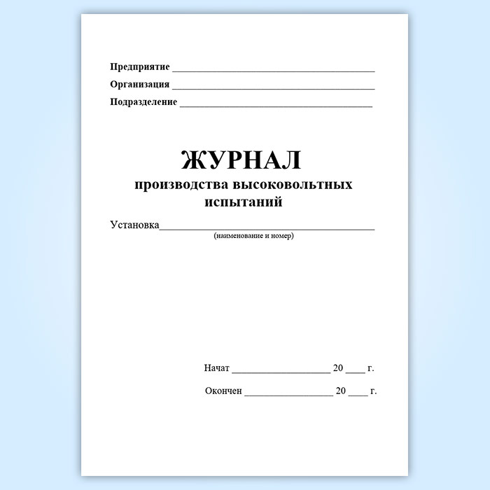 На каждую высоковольтную испытательную установку должен быть заведен журнал. Перед началом работ ответственный руководитель проводит инструктаж для всех членов бригады, участвующей в высоковольтных испытаниях, с записью в журнале.