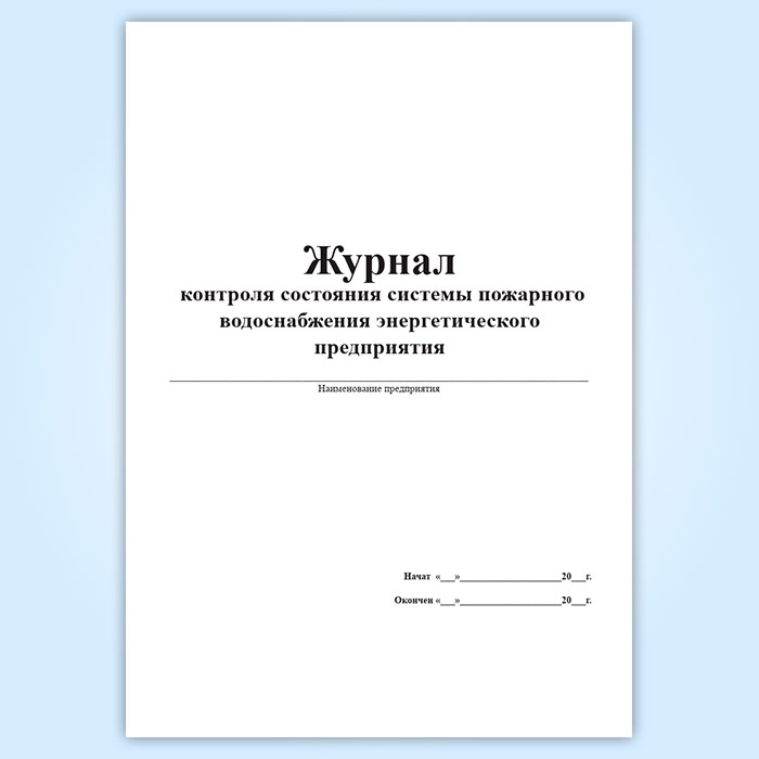 Журнал контроля состояния системы пожарного водоснабжения энергетического предприятия