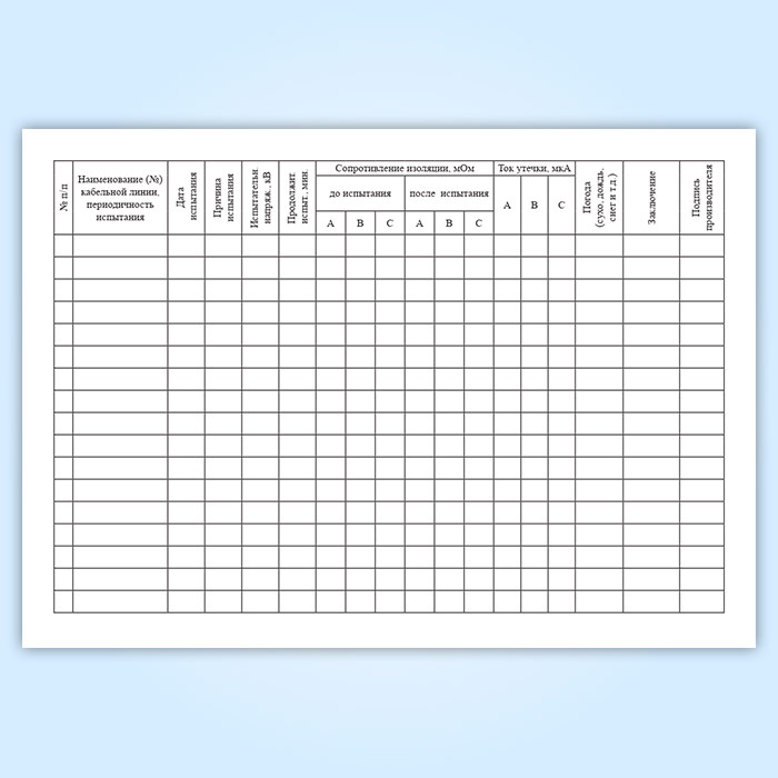 Журнал испытаний кабельных линий с повышенным напряжением (форма № 20-Э)