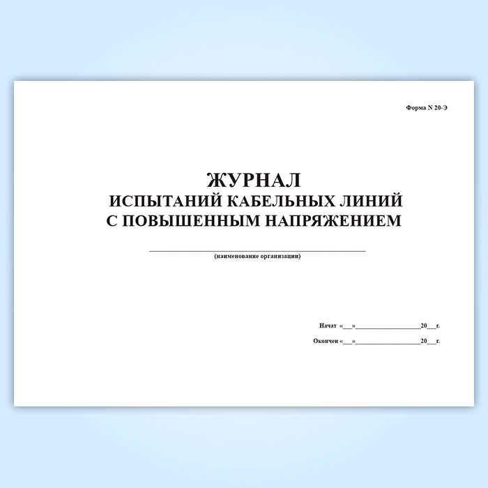 Форма журнала испытаний кабельных линий с повышенным напряжением (Форма № 20-Э) соответствует Приложению к Инструкции по ведению первичной технической документации в городских электрических сетях, которая утратила силу.