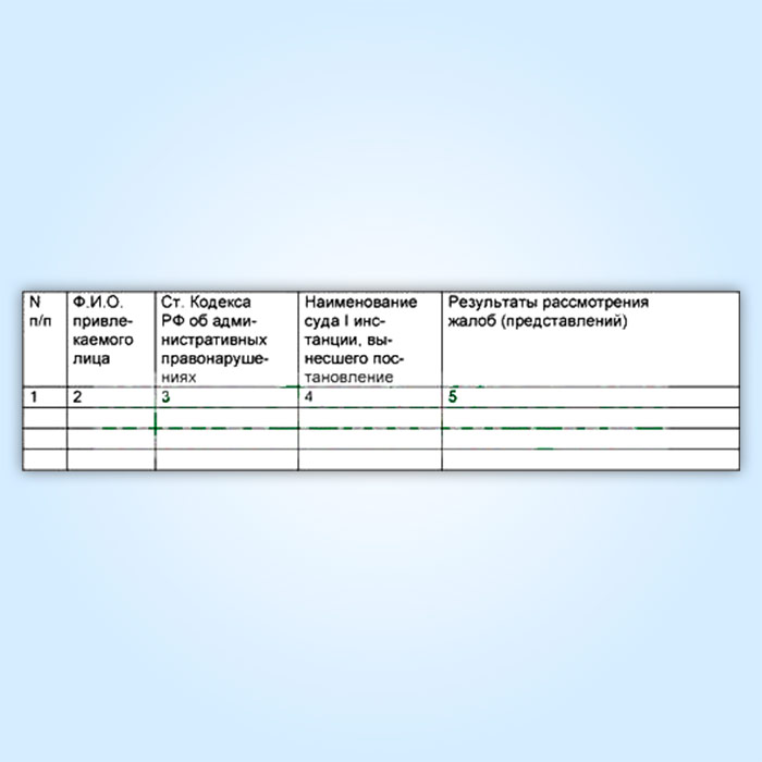 Алфавитный журнал регистрации жалоб (протестов) на вступившие в законную силу постановления по делам