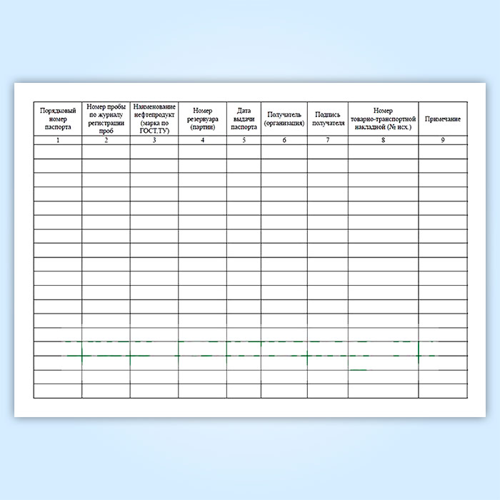 Графыжурнала выдачи паспортов качества (нефтепродукты):