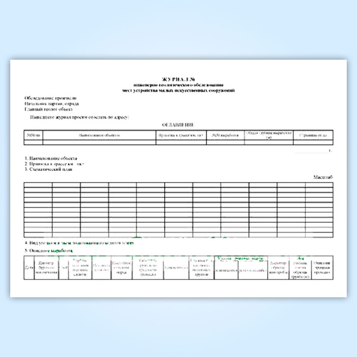 Журнал инженерно-геологического обследования мест устройства малых искусственных сооружений
