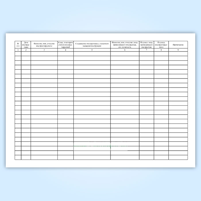См. также Журнал инструктажа обучающихся по технике безопасности при организации и проведении туристических походов, экспедиций и экскурсий, графы которого схожи