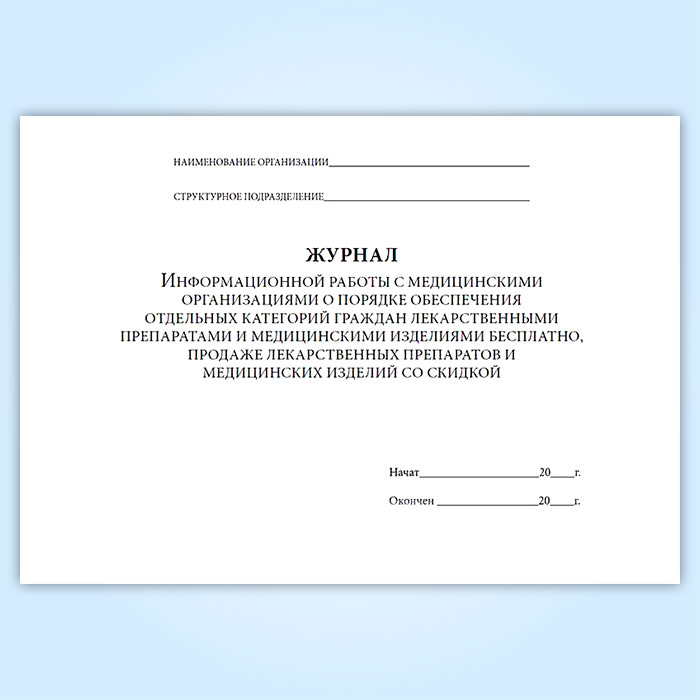Журнал информационной работы с медицинскими организациями о порядке обеспечения отдельных категорий граждан лекарственными препаратами и медицинскими изделиями бесплатно, продаже лекарственных препаратов и медицинских изделий со скидкой