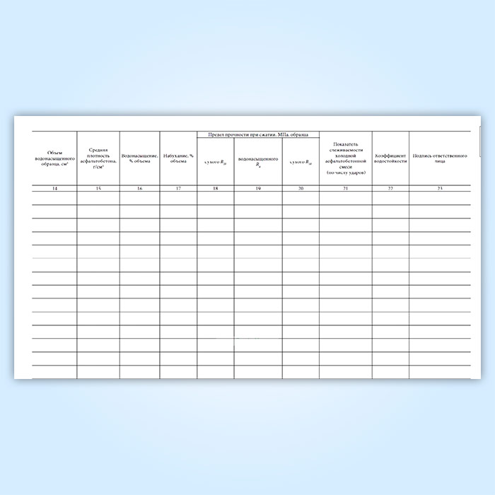 См. также Журнал испытания проб асфальтобетонных смесей, взятых из смесителя, у которого 27 граф.