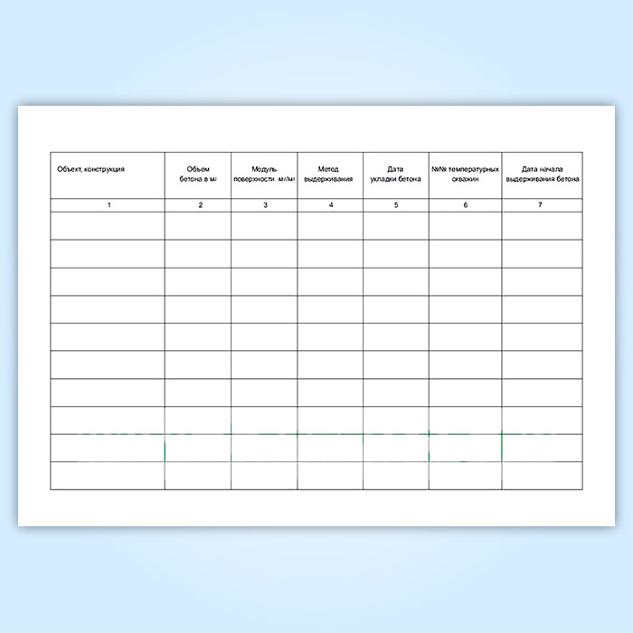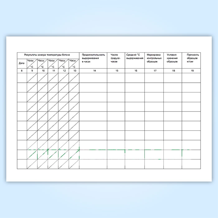Кроме того, в зимних условиях в журнале бетонных работ заполняются графы 8 и 9.