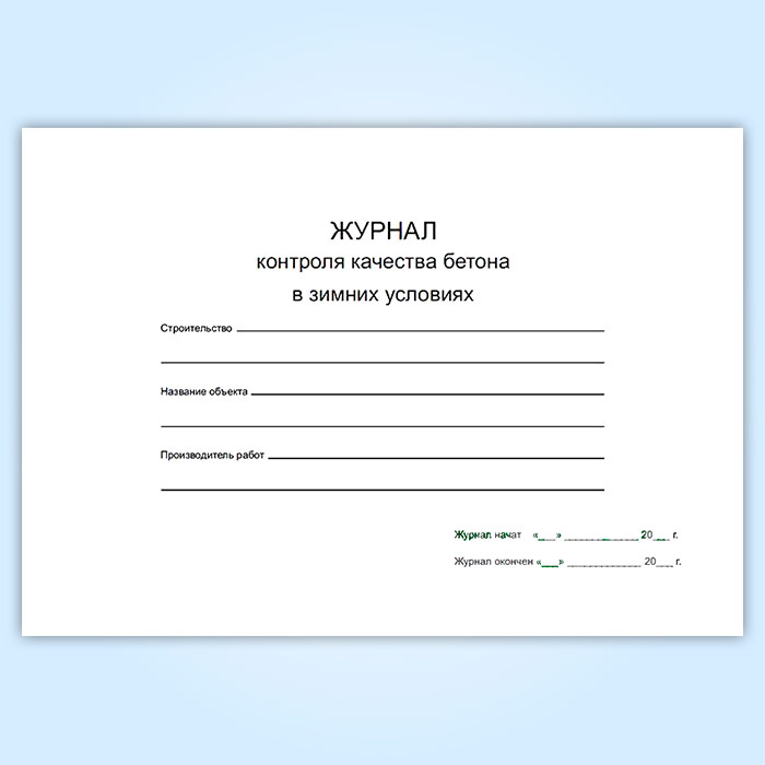 Журнал контроля качества бетона в зимних условиях