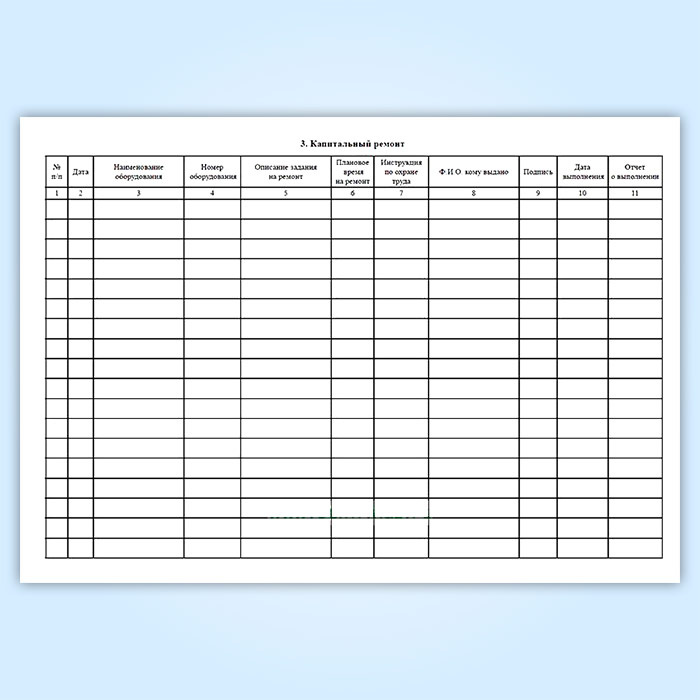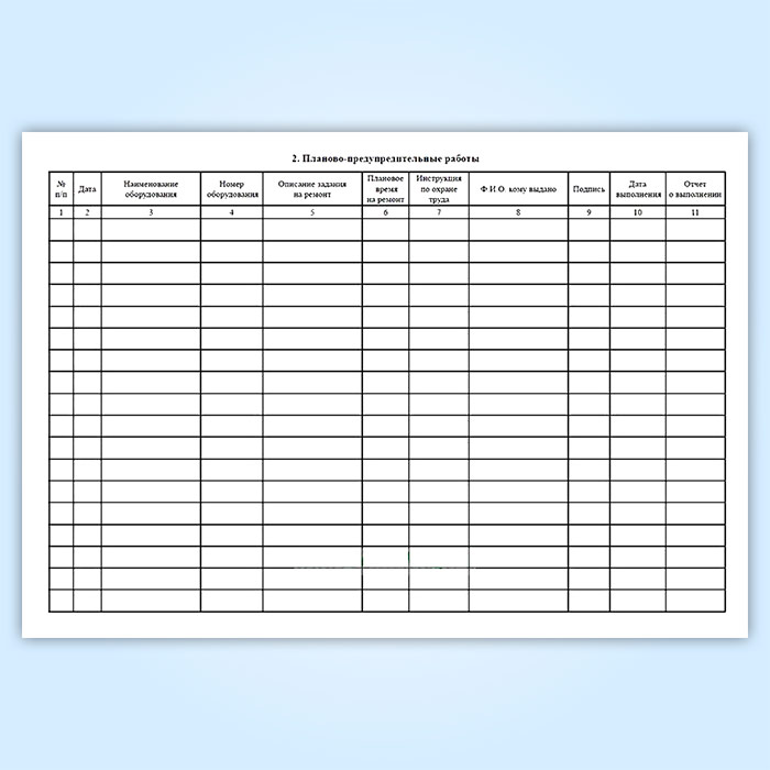 Графы раздела "2. Планово-предупредительные работы" и "3. Капитальный ремонт" аналогичны графам раздела 1.