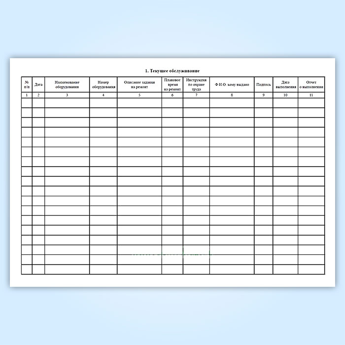 Раздел "1. Текущее обслуживание" журнала содержит графы: