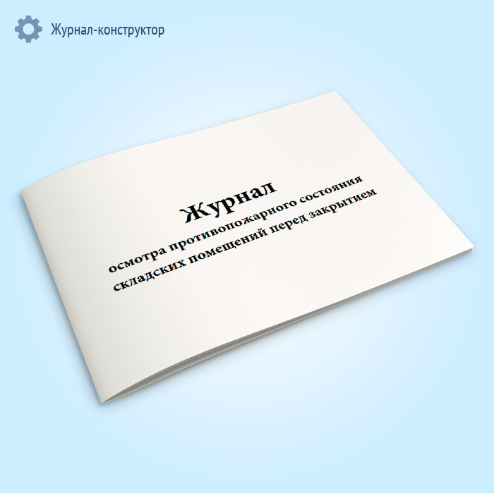 Форма журнала осмотра противопожарного состояния складских помещений перед закрытием соответствует Приложению 6 к Правилам " РД 153-34.0-03.301-00 (ВППБ 01-02-95*) «Правила пожарной безопасности для энергетических предприятий» (вместе с " Положением об ответственности работников энергетических предприятий за обеспечение пожарной безопасности" , " Программой подготовки персонала по пожарной безопасности в электроэнергетической отрасли" , " Положением о пожарно-технических комиссиях на предприятиях и в организациях электроэнергетической отрасли" ), утвержденных РАО " ЕЭС России" от 09.03.2000 года.