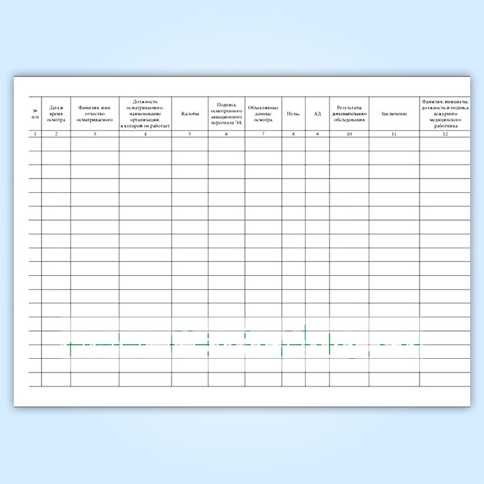 Графы журнала предполетного и послеполетного (при необходимости) медицинского осмотра авиационного персонала: