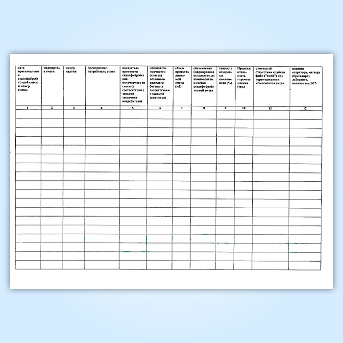 Журнал приготовления сталефибробетонной смеси и операционного контроля качества работ (ЖЗ)