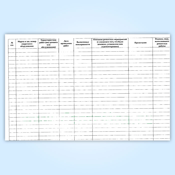 Журнал проведения планово-профилактических работ и обслуживания сварочного оборудования