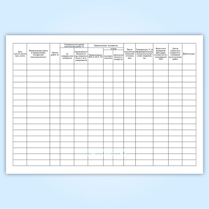 В журнале производства противокоррозионных работ фиксируются результаты пооперационного контроля качества нанесения системы ЛКП на всех этапах окрашивания.