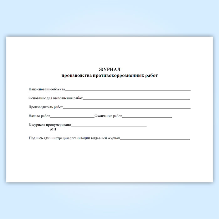 Журнал производства противокоррозионных работ