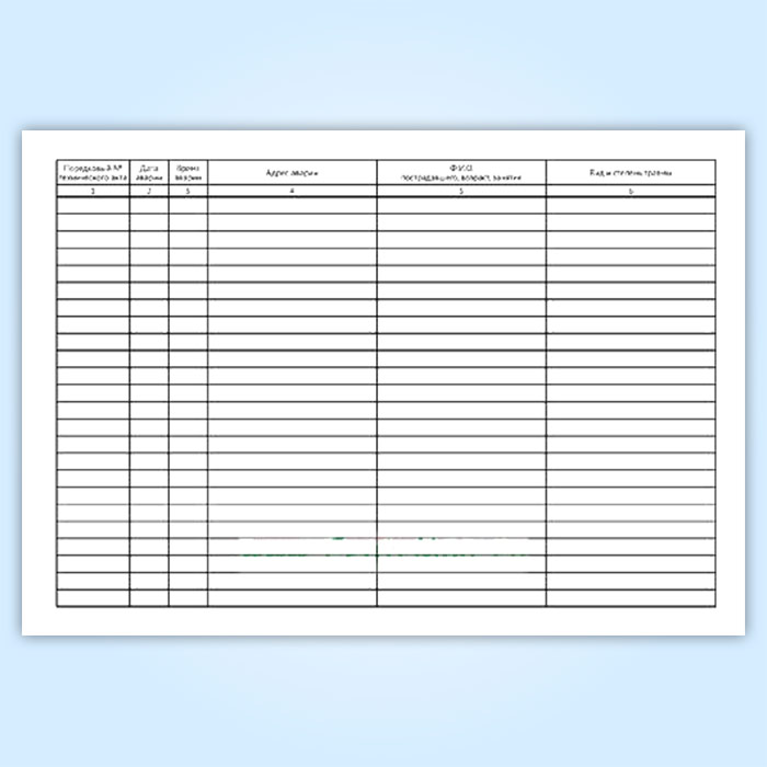 Форма журнала регистрации аварий. Форма 27Э соответствует Приложению к Технической эксплуатации газораспределительных систем. Примерные формы эксплуатационной документации. ГОСТ 153-39.3-053-2003, в настоящее время отмененного.
