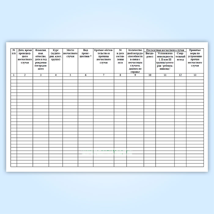 Журнал регистрации несчастных случаев с обучающимися